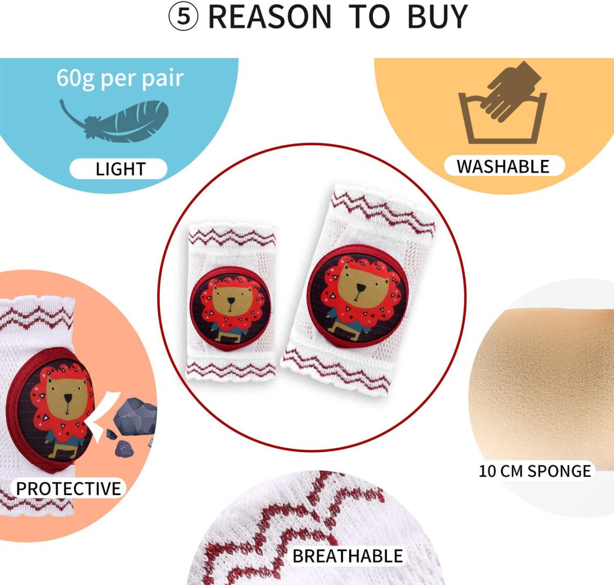 Get these cute Baby Crawling Knee Pads, the set of 7 Protective Knee pads for baby crawling. Each pair of knee pads feature fun and cute animal and character; these fun illustrations make them the best accessory for your adorable little one.