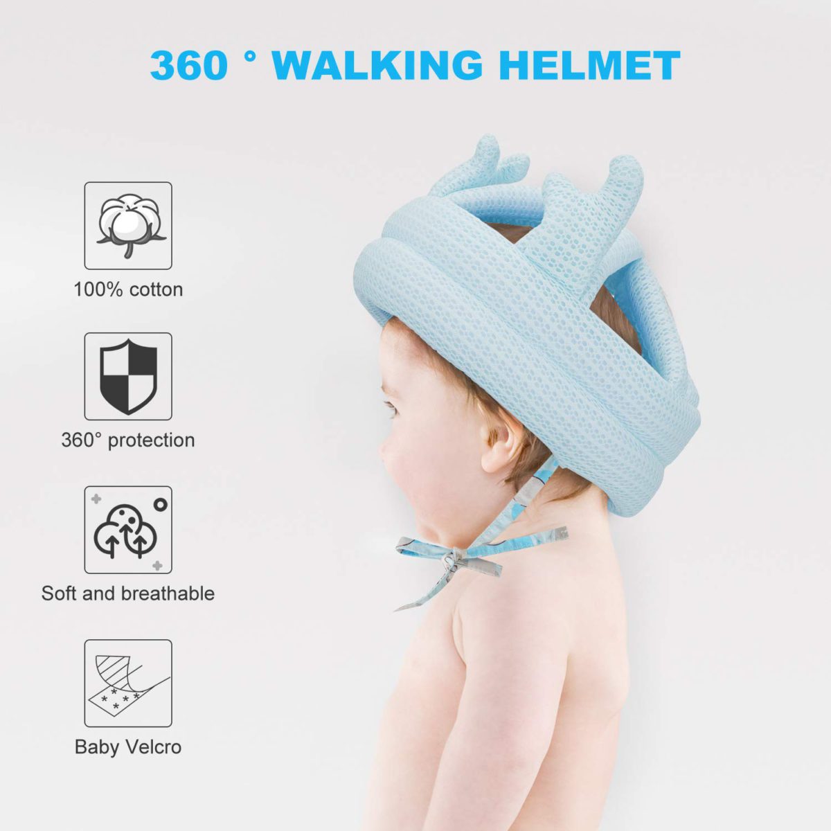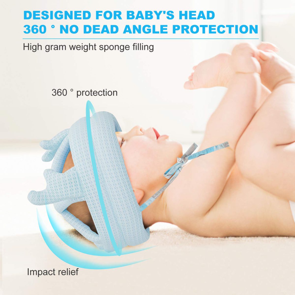 - 【360° HEAD PROTECTION】Our anti-fall head protection for babies is considerately and carefully designed for protecting the sensitive parts, like the top of the skull and temple. The infant head helmet is crafted with soft sponge with good elasticity, no matter what activities babies do, moving forward or falling back, the infant head helmet will be protective cushion for babies’ heads.