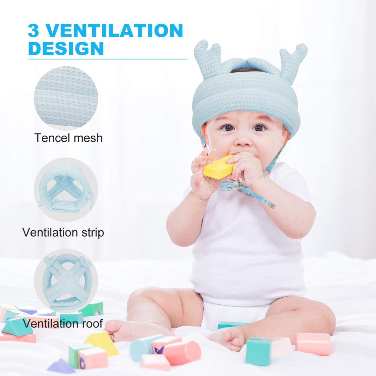 - 【WINDMILL ON THE HEAD】On the top of the head cushion hat, we designed a plastic small windmill. The cute appearance greatly attracts baby’s attention, and they are willing to wear the safety helmet. At the same time, the windmill will rotate when baby is moving, bringing babies’ head with breeze and cool feeling.