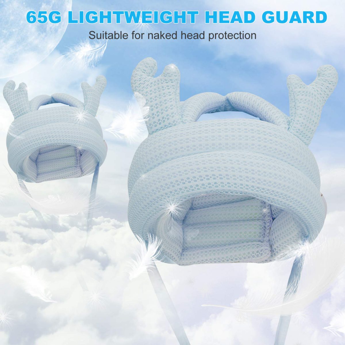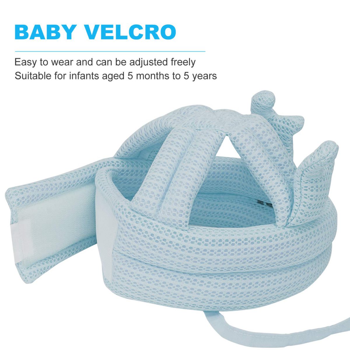 - 【LIGHTWEIGHT AND NO BURDEN】The lightweight never construct a burden for babies’ heads as the net weight of the head cushion hat is just like a pack of paper towel, as you can imagine. The connection part of the baby safety helmet adopts a special Velcro design, soft and smooth, which will not stick to babies’ hair.