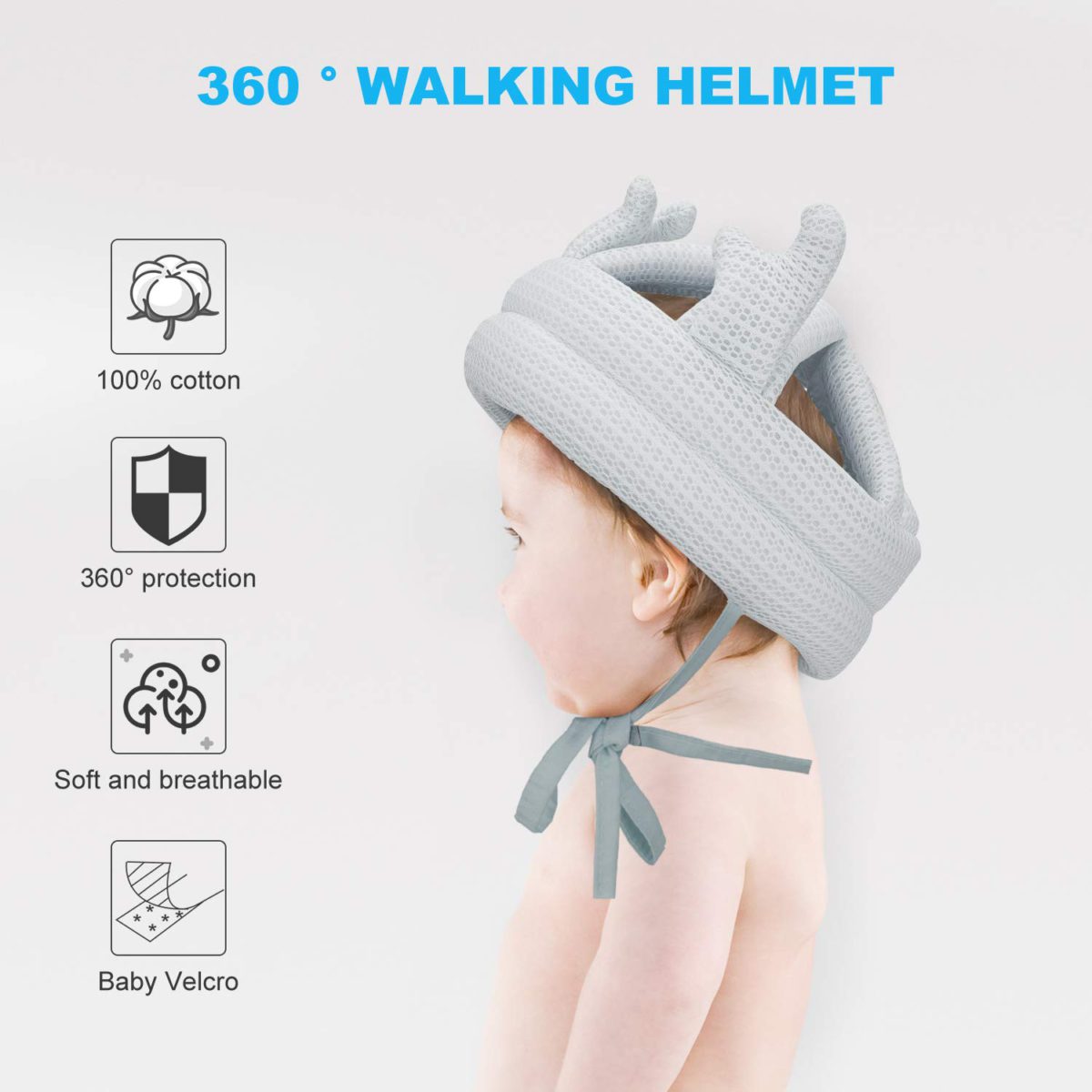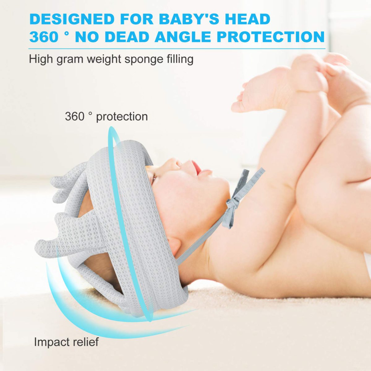 - 【360° HEAD PROTECTION】Our anti-fall head protection for babies is considerately and carefully designed for protecting the sensitive parts, like the top of the skull and temple. The infant head helmet is crafted with soft sponge with good elasticity, no matter what activities babies do, moving forward or falling back, the infant head helmet will be protective cushion for babies’ heads.