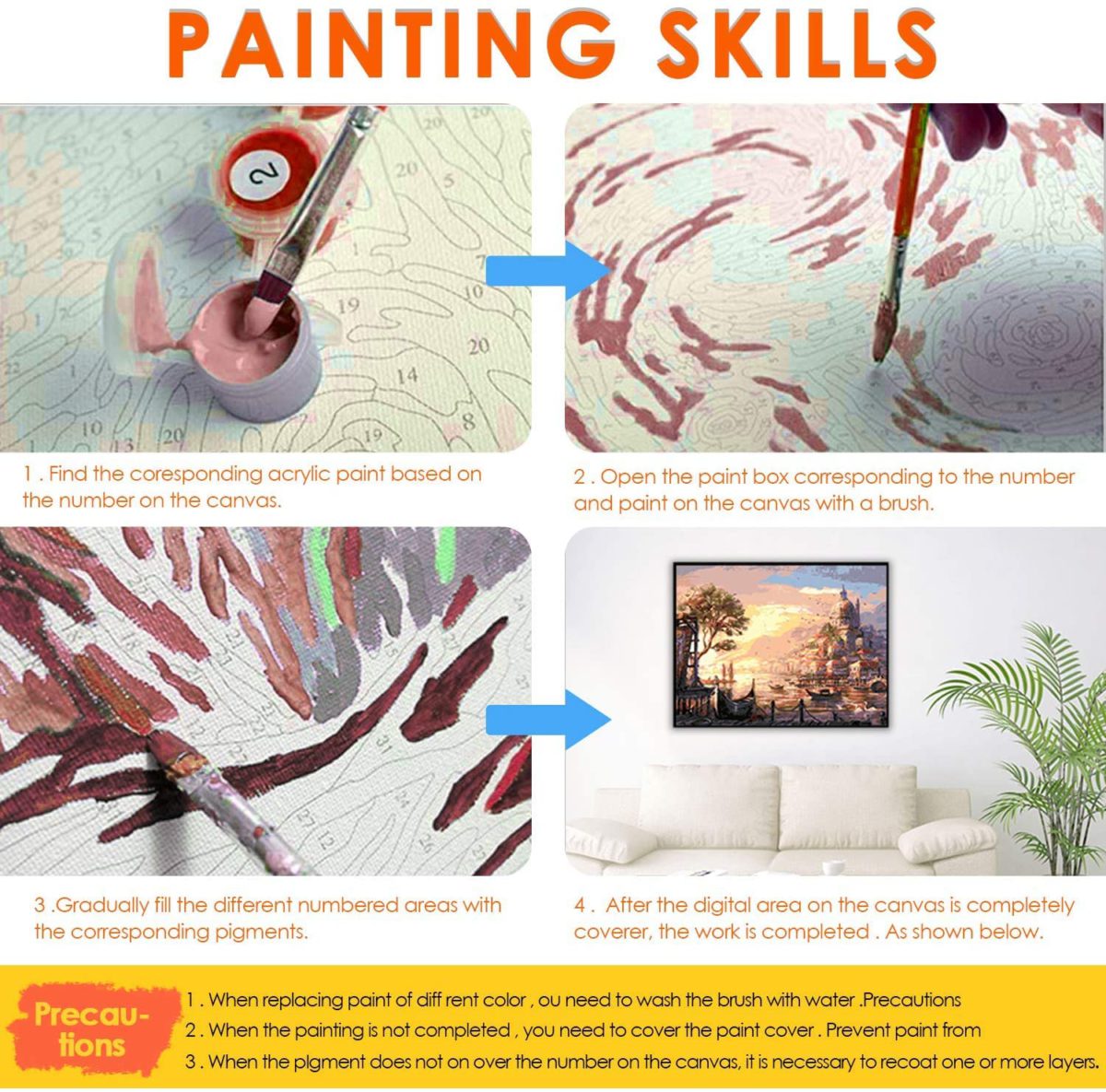 - 【Material】-High Quality Painting Brushes and Safe Acrylic Paints,Cooperate high quality Linen Canvas ,You will paint a perfect masterpiece that belongs to you.