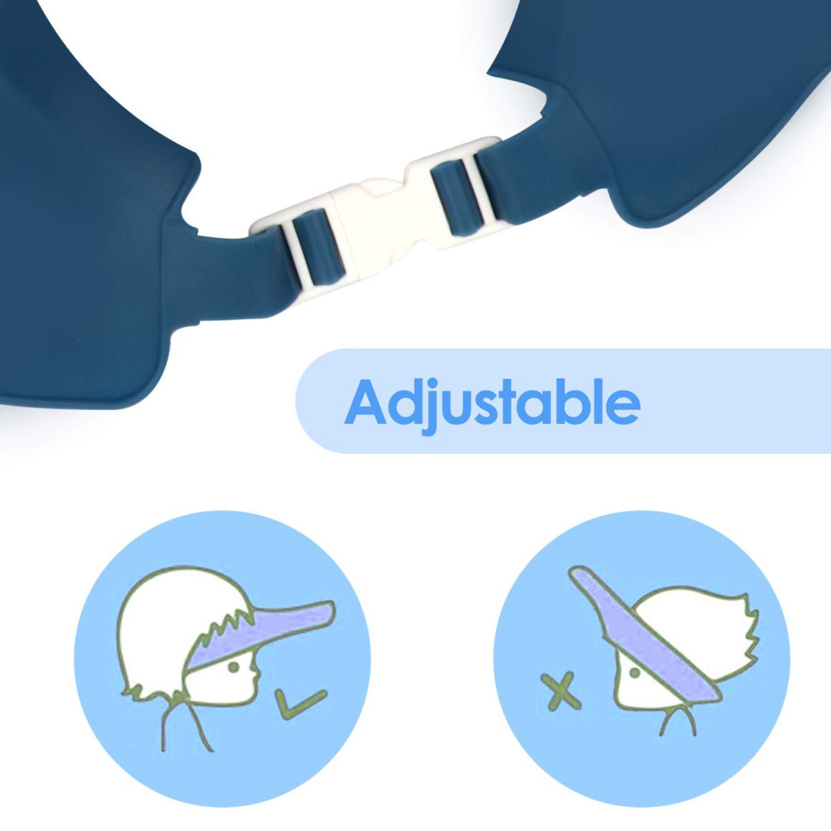- Adjustable Bathing Cap Size: With 9 Adjustable Fasteners On the Cap, It Fits Head Circumference 14.9-22.8 inches (adjustable) for 0-7 Year’s Kids to Use.